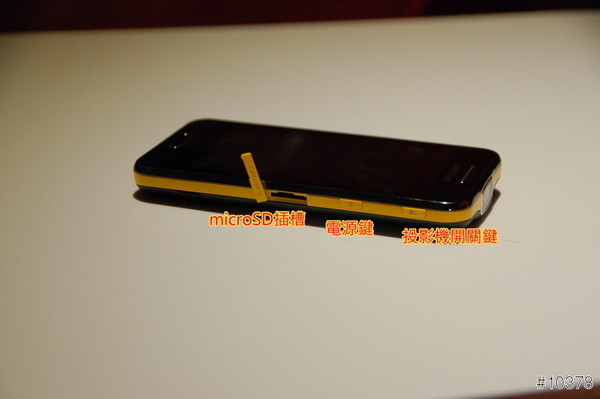右側可以看到投影機啟動關閉鍵、電源鍵與microSD記憶卡插槽。