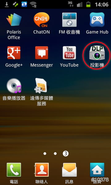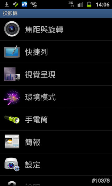 在介面上跟一般三星的 Android 手機差不多,最特別的就是多了 DLP 投影機的選項功能。