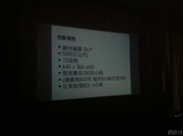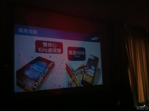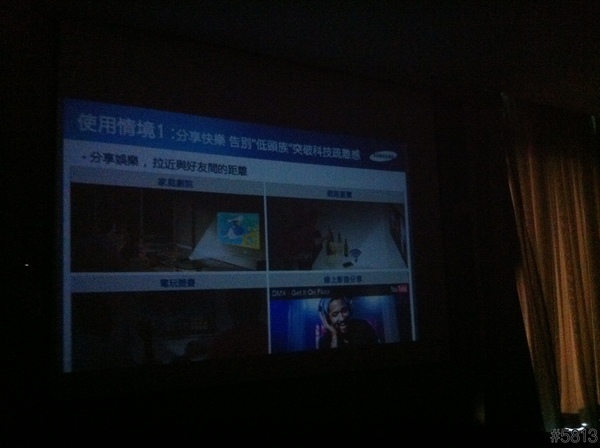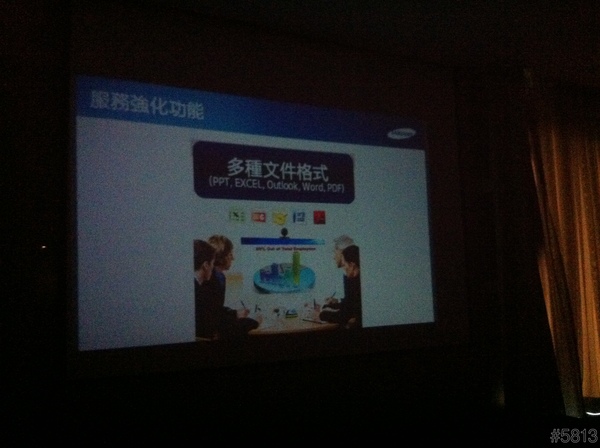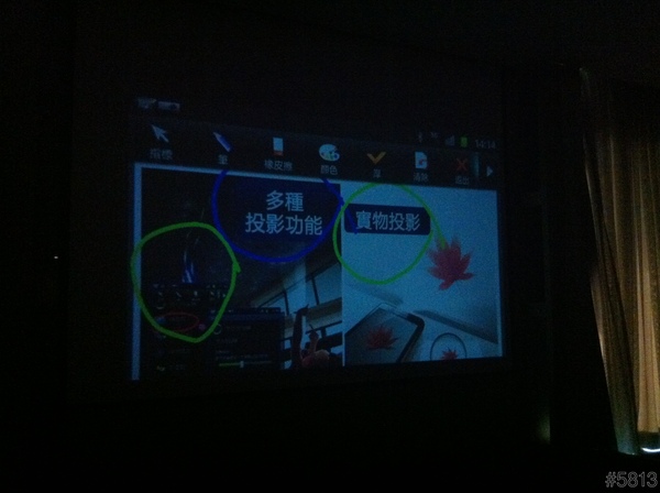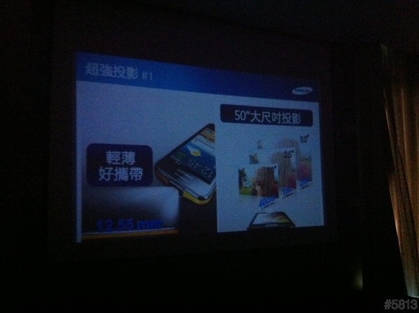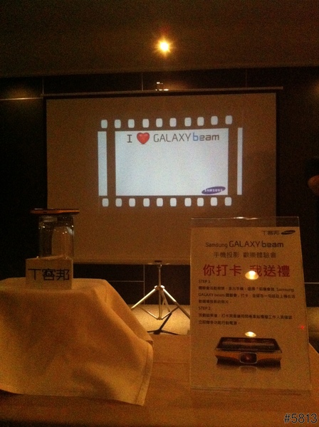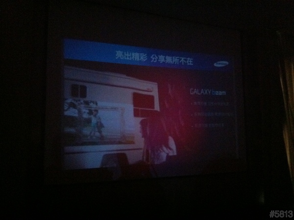 即然是投影手機,所以整場的說明簡報,就是用這台SAMSUNG GALAXY Beam來當做投影機,立馬達到宣傳效果,不過因為會場燈光較暗,以下照片,難免雜訊過多,見諒了。