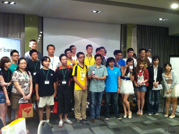 一進會場,當然要打一下卡,因為會有打卡禮,這次的方式不一樣,要用這台手機投影出來的相框照張本人的相片,上傳才算完成,為了不要嚇到大家,本人照片就不上傳了。