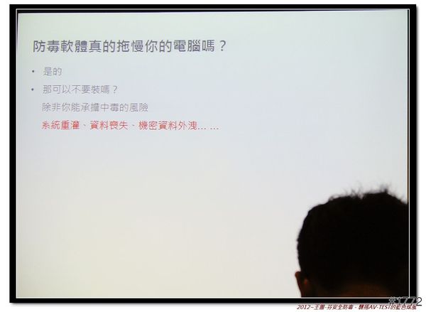▲最後回到我們主題,其實安裝防毒軟體是會拖慢電腦速度,但更重要的是如果使用者可以承擔重要資料意外風險的話...也因此慢慢帶出我們平日防毒的重要性