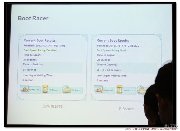▲由數據得知在登入作業系統前時間差距不多,但是在登入後開啟常駐的防毒軟體需要花費一些時間