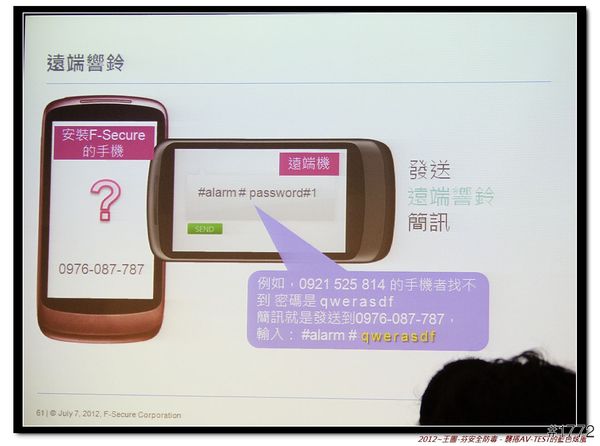 ▲可以發送"#Alarm#password#1"簡訊來使手機發出聲響