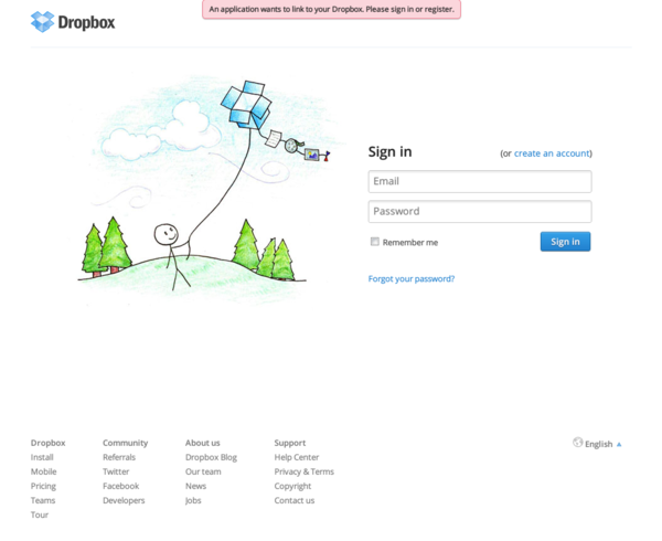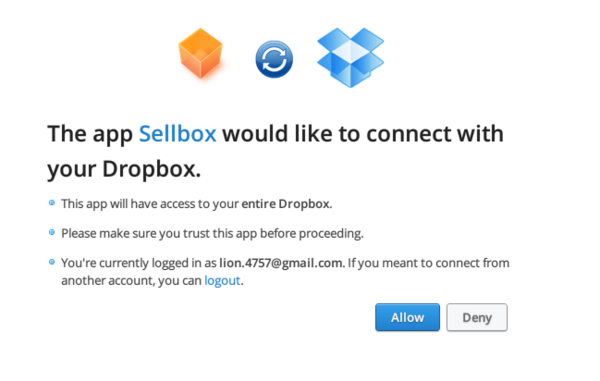 ▲ 在登入時會要求你先登入 Dropbox 帳戶來連結,SellBox 要選擇上架的資源都必須從 DropBox 中選擇。