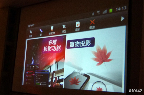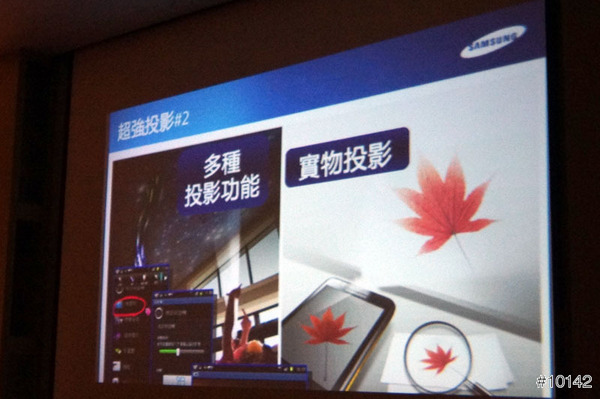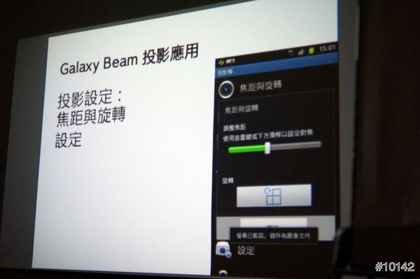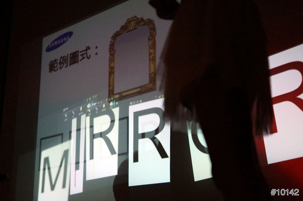 ▲現場也立即使用Galaxy Beam投影出相框,以這麼小的機體,卻可投出這麼清楚的畫質,真是令人吃驚。