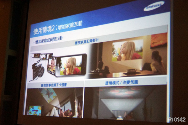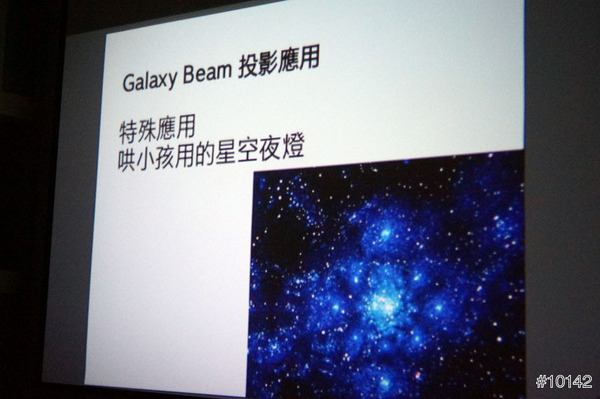 ▲最後ERIC又做了投影機APP一些補充;一般大家不管上班或上課,回家後可能想放鬆一些心情,但因為隔天不是假日尺可能跑到陽明山上去放鬆心情,這時這一部GALAXY BEAM就派上用場,只要使用情境模式,就可以創造出不同的氛圍