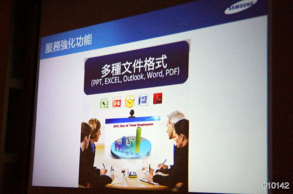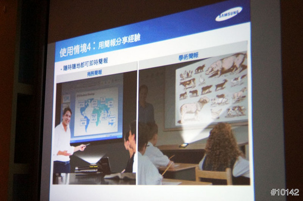 ▲在應用上最常投影應用在商務上,尤其是業務帶投影片去見客戶或學生帶簡報擒找教授;小侯也曾帶著Galaxy Beam去做簡報,結果直接投影後效果很不錯,比起帶13-15吋的筆電,Galaxy Beam能投影到50吋有更好的效果