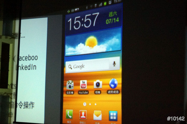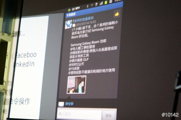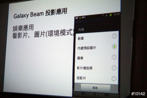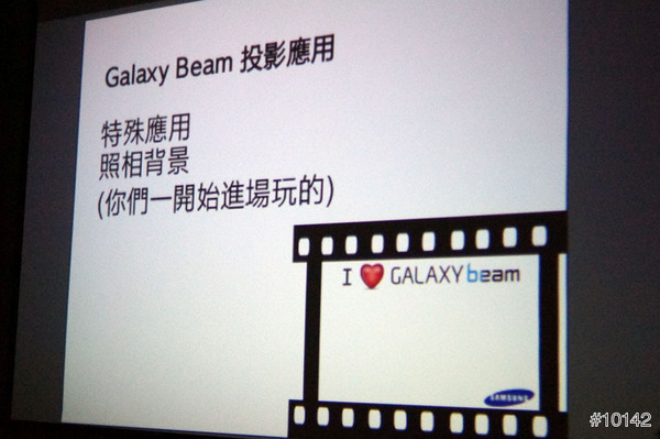 ▲小侯一樣也是利用Samsung Galaxy Beam進行投影,其實小侯已經體驗一段時間了,所以頗有心得,但也開完笑的說,想介紹的都讓ERIC給說完了...