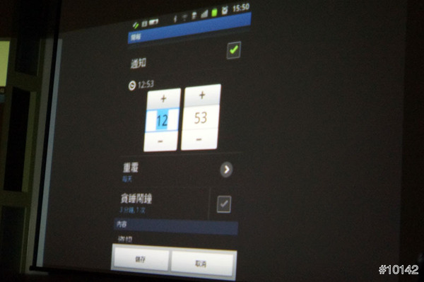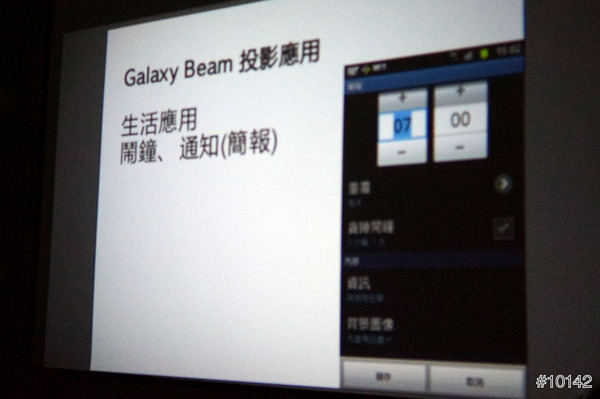 ▲《簡報模式》是鬧鐘的上級運用,將鬧鐘的鈴聲改搭配各種情報的投影,這也只有Samsung Galaxy Beam才做得出來