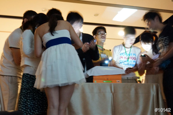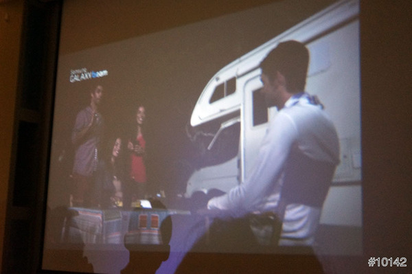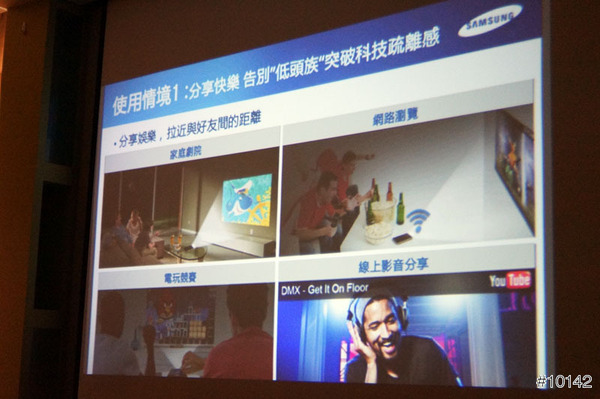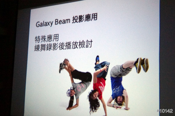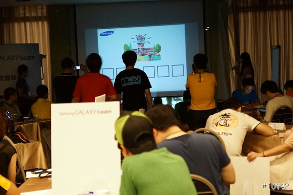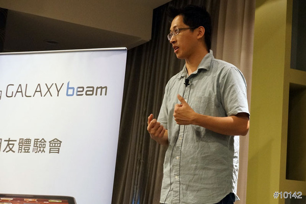 ▲以往的體驗會,主講人都會站在前面解說,但這次很不一樣,因為這次的簡報是用Galaxy Beam直接投影,所以為了操作Galaxy Beam,ERIC會背對著大家...說著說著ERIC就走下台直接操作起BEAM了