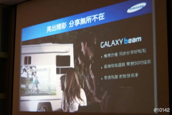 ▲體驗會場門口的電視,已經直接揭曉了這支Galaxy Beam的特色了,如果這樣還看不出來,那可要好好的往下看囉