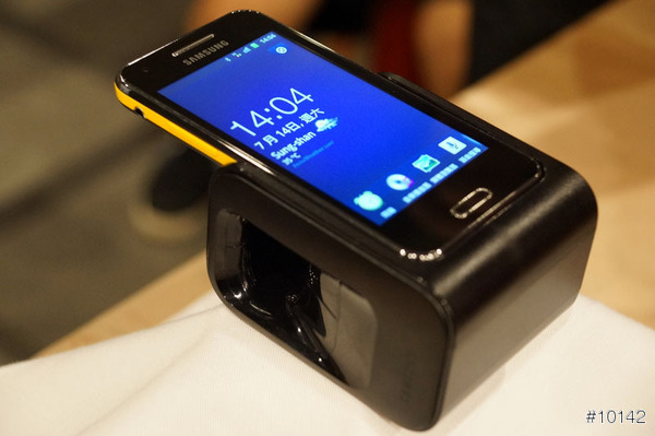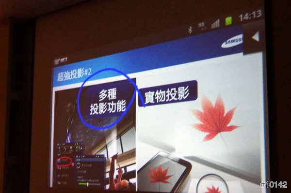 ▲就是這一台Galaxy Beam,架在專屬的多媒體迴音座上。多媒體迴音座有四大功能:
