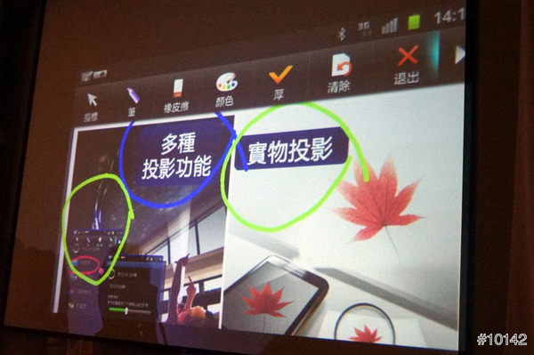 ▲看ERIC又換個綠色來畫重點,真的比一般投影機方便太多了啦