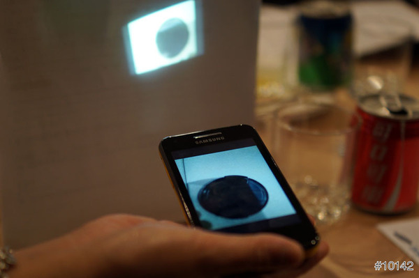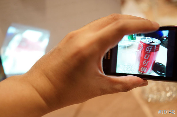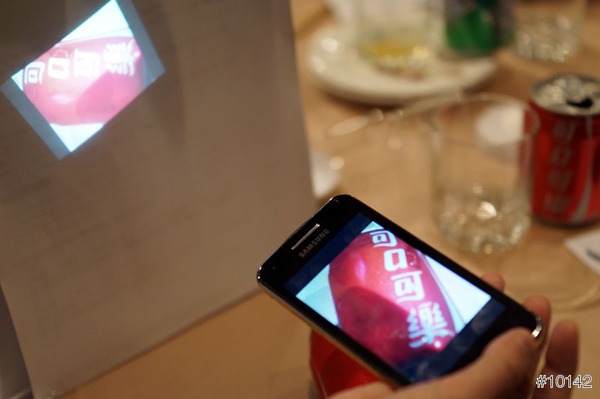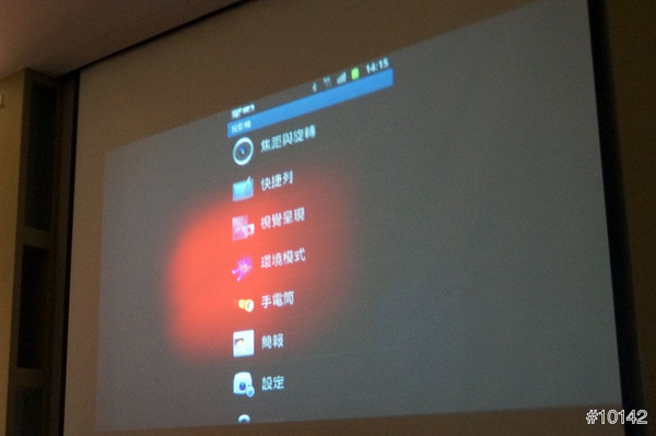 ▲透過後面500萬像素相機的拍攝,並同步投影出來(似乎有點不清楚)