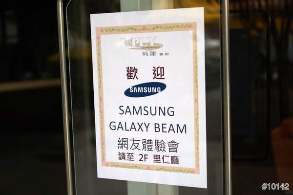 ▲進到電梯大廳也有「Samsung Galaxy Beam體驗會」大型易拉展海報,不過我沒有時間好好欣賞,先找如何上樓的方式再說