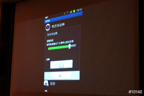 ▲由於之前ERIC有稍微提過應用與功能,所以小侯很快的帶過APP的介紹:投影一開始其實還是需要先手動設定焦距,設定有兩種方式,一種是畫面上的拉棒來調整,一種是由手機左側的音量鍵來控制,使用上更方便。