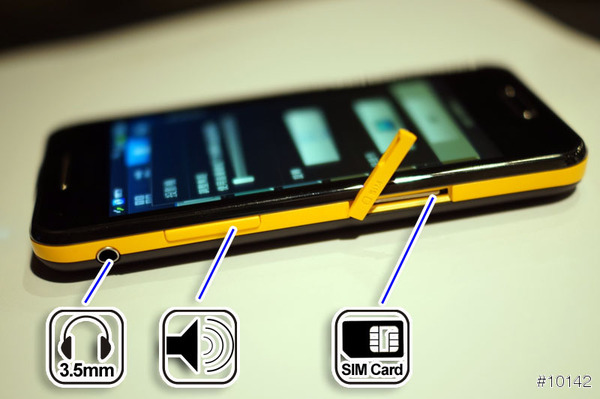 ▲左側邊從上方3.5mm耳機孔、音量控制鍵和SIM卡槽(含防塵蓋),這裡的音量控制鍵也可以調整投影時的焦距喔