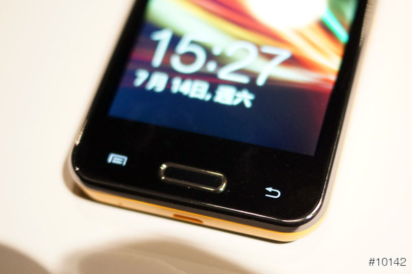 ▲螢幕下方是三星家族慣有的設計,中間為HOME首頁的實體鍵,兩旁有選項與返回觸控按鍵,碰觸後有背光