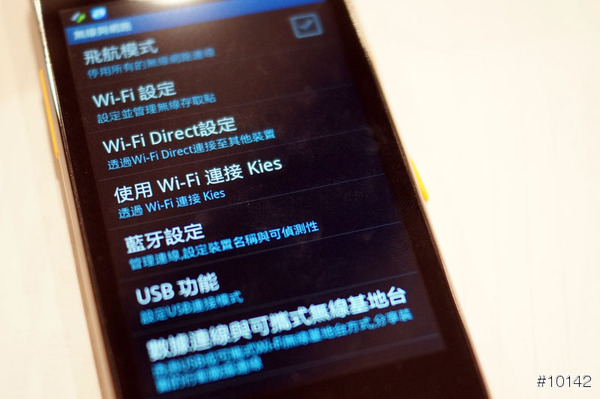 ▲從設定中的無線與網路來看,大致上是和一般差不多,有Wi-Fi Direct的設定和連接Kies選項