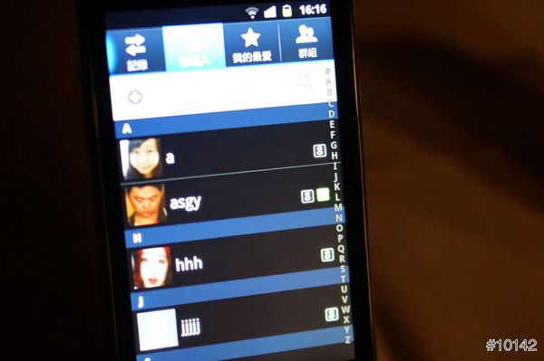 ▲聯絡人也可區分是從何處匯入或連結的符號,另外右側有英文索引