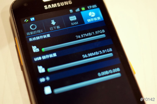 ▲儲存裝置部份也能查詢現在儲存空間的狀況,包含系統空間、USB儲存空間和SD卡;不過Galaxy Beam應該不支援OTG才是,這 USB空間應該指的是ROM嗎?