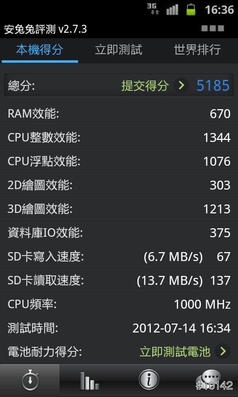▲測試結果出爐,大概是5185分,分數只能說差強人意(比我的GSMART才1677分好多了)