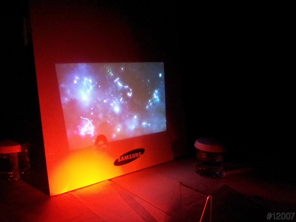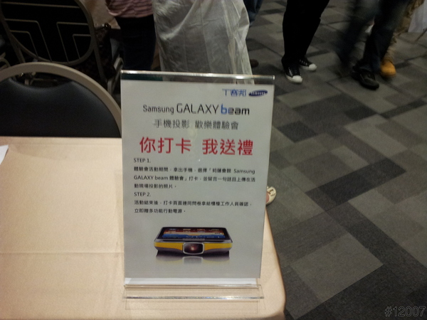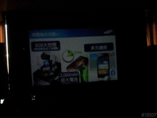 第一位介紹Galaxy Beam 的是Samsung 產品經理 Eric,直接用Galaxy Beam的投影方式來介紹其產品,非常實際體驗Galaxy Beam的操作性,但有些許的不足點,就是我坐的位子太遠了啦,我看介紹報告非常吃力,下面的照片有不好處多多包含!!