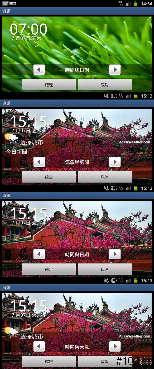 只顯示『時間與日期』或增加『氣象與新聞』、『時間與天氣』、『天氣與行事曆』