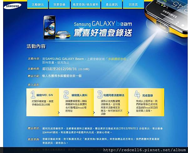 現在購買Samsung Galaxy Beam,除了原廠一開始就撒必斯的給您二顆三星原廠 2000mAh電池及專屬電池座充外,消費者在八月三十一日前上網登錄相關資料三星再加碼送您簡報必備的迴音多媒體底座!三星真是超佛心!