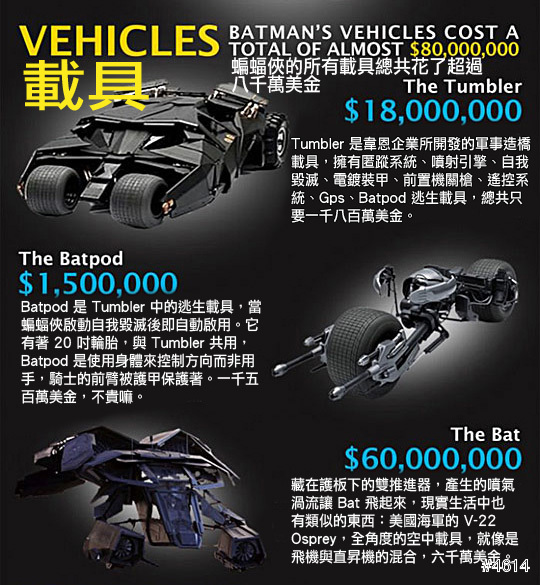 > The Batpod 的金額怪怪的,如果不是少一個零,就是中文註解多一個零