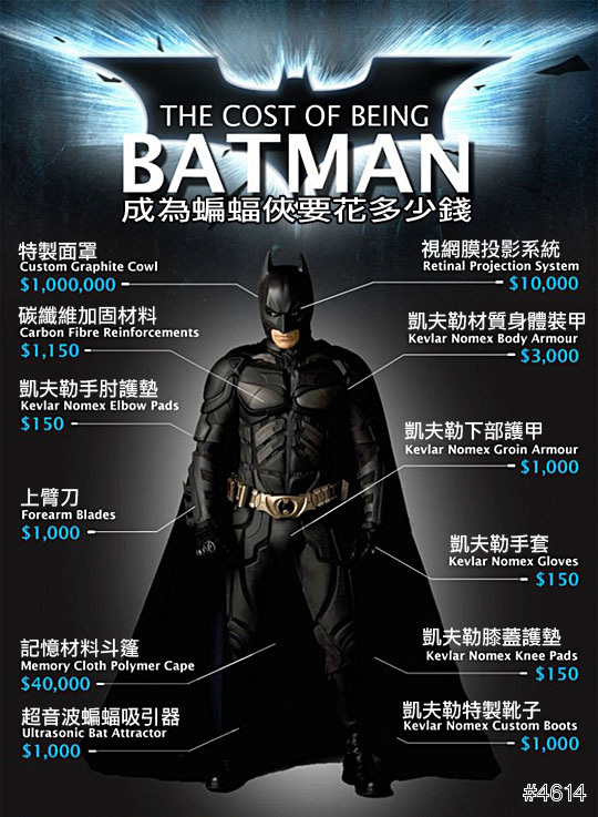 想成為蝙蝠俠嗎?或許你沒有那樣的機緣,或許現實中也沒有高譚市,但是在這無常的世界中還是有一些東西是比較「有常」一些的……如果要成為蝙蝠俠,你究竟要花多少錢呢?