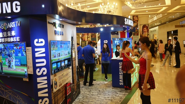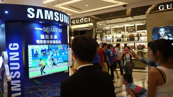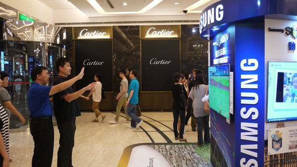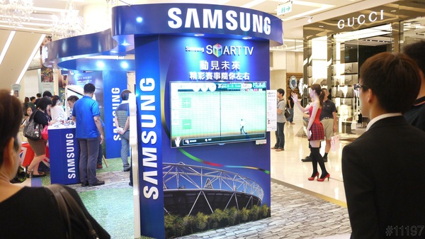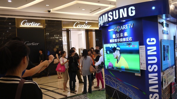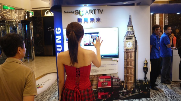 假日跟女友去逛微風,逛的腰痠背痛的,正要從光復南路口出來時,就看到了Samsung smart TV的展示