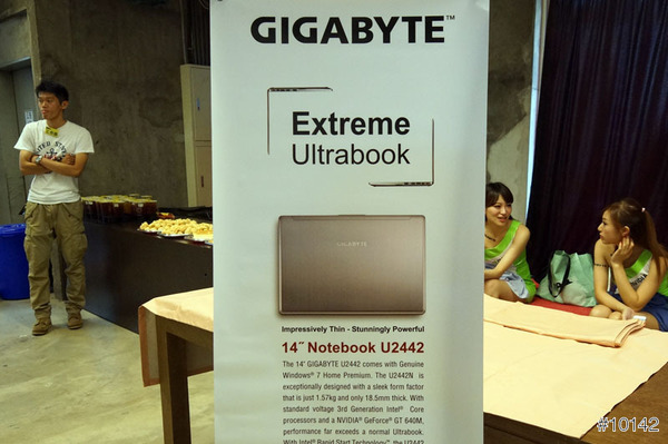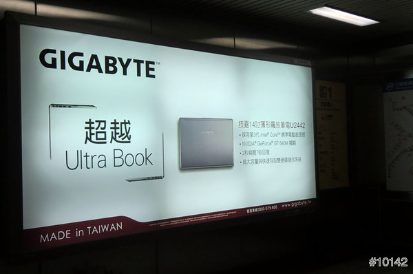 ▲另一側的廣告則是「超越Ultra Book」,這是U2442技嘉14吋薄形飆效筆電的宣傳用語,我也是對這款筆電最有興趣,待會的體驗會中就可體驗到U2442了喔