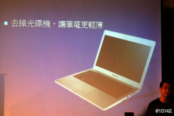 ▲因此就有一些Ultrabook也實際取消了光碟機這項配備,文恩大師也舉出現場技嘉的U2442為例,由於定位是Ultrabook,並且是14吋的機種,U2442雖然使用常規電壓CPU,也內建了獨立顯卡,但和一般笨重的筆電不同是捨棄了內建光碟機和電池無法抽換的差異;在電池部份文恩大師也特別做了說明,以目前Ultrabook電池均有達到5小時以上的使用時間下,大都足夠符合一般使用,因此為了節省空間與重量,換成無法替換電池的設計的確是很好的做法。其實就算我是筆電重度使用者,但我也幾乎沒有去購買第二顆電池來做替換使用。