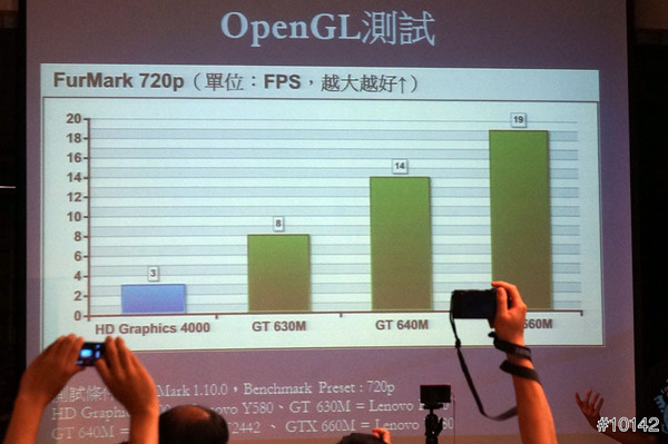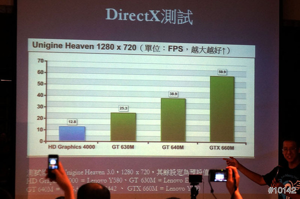 ▲目前由於IVY BRIDGE登場,內顯也有較明顯的進步,從DirectX來看,以往使用的HD Graphics 3000的內顯技術,在升級到HD Graphics 4000後,經過電腦王持續測試,約有100%-200%倍的效能提昇,但如果面對NVIDIA® GeForce 600M系列的話,仍落後一大截;而如果顯示效能提昇的話,除了能提高遊戲的解析度,也能使用更多影像的特效或反鋸齒設定。文恩也補充說,雖然有網友會認為獨顯會比較耗電,這其實在耗電肯定會有些影響,但如果能做到輕薄方便好攜帶,則這些耗電其實是可以被接受的。