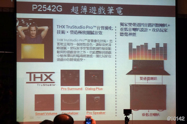 ▲所以也特別說明THX TruStudio Pro音質優化技術,這是CREATIVE的子公司,要取得THX認證可是要把每部機器送去新加坡實驗室進行認證才行。而獨家雙聲道4顆喇叭加上重低音喇叭設計,分別在鍵盤前正面兩顆和筆電底部三顆,來讓使用者得到最高級的聲音效果。