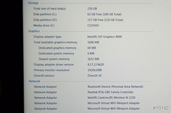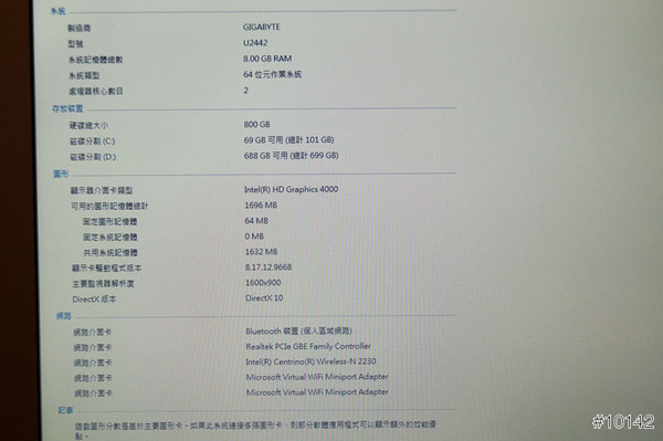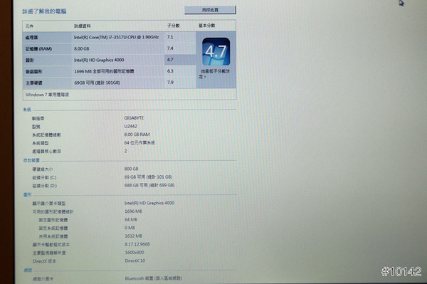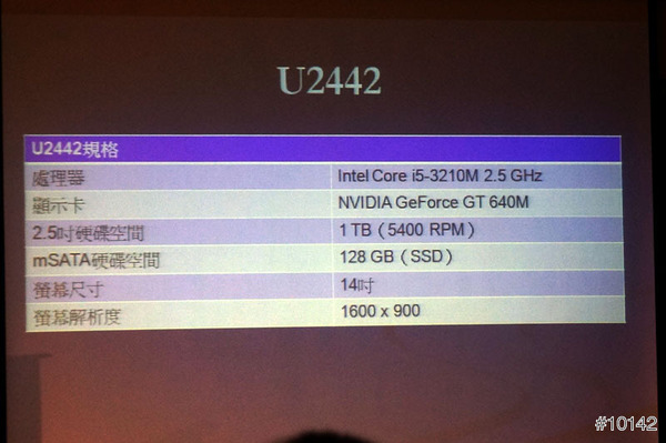 ▲這就是U2442的重點規格,可以看到處理器是使用i5-3210M,並不是使用一般的低電壓版,所以效能不會有折扣;另外獨顯使用了GeForce 640M,螢幕採用了14吋1600×900的解析度;而2.5吋的硬碟配備5400RPM/1TB,mSATA接上了128GB的SSD。