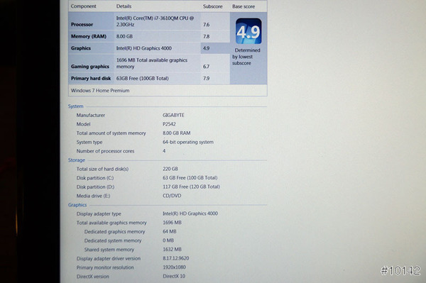 ▲再來看規格部份,最高檔採用了i7-3610QM四核心處理器,而在2.5吋硬碟空間就直接裝上256GB的SSD,mSATA目前體驗機型是沒有安裝;螢幕是15.6吋,解析度則是FULL HD1920 × 1080。