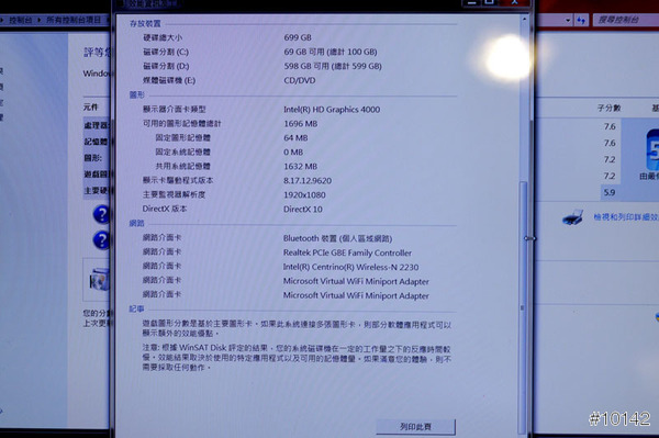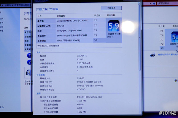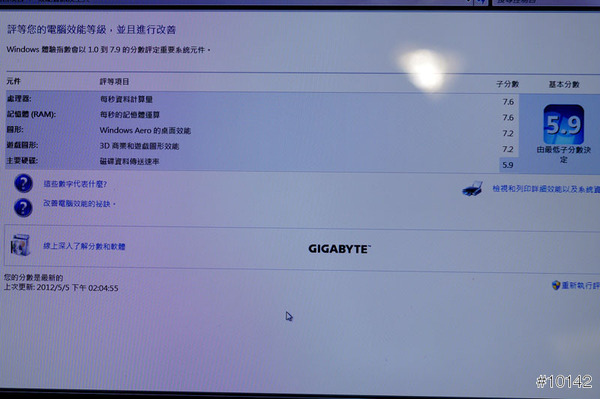 ▲上回所體驗的系統分數為5.9分,最低部分在硬碟效率,應該是使用傳統硬碟的緣故