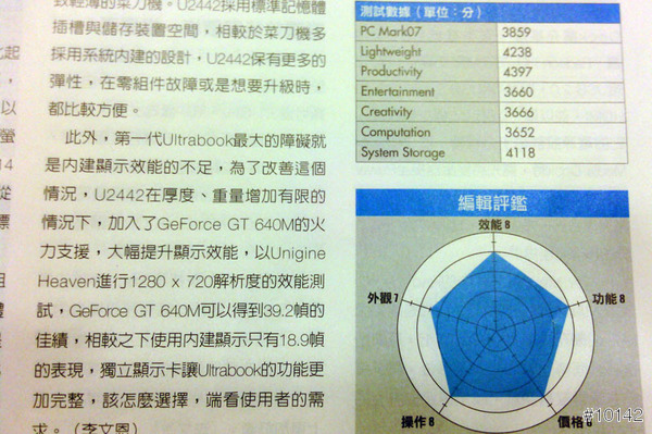 ▲由於時間關係無法進行較多的效能測試,僅放上6月份電腦王文恩大師的測試數據供參考(來源:電腦王6月號)