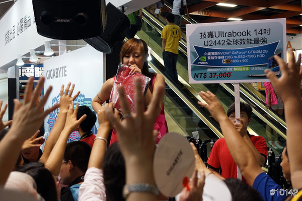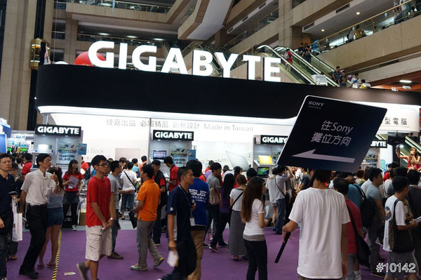 ▲只見GIGABYTE果真非常重視筆電市場,整個月台上方的廣告全部包下,一邊是「全機碳纖 全球最輕」的標語,這是技嘉11.6吋極致筆電X11的宣傳用語,可惜X11因為沒有獨顯,故並沒有在今天活動的體驗名單中。
