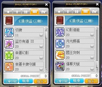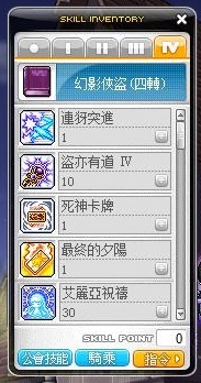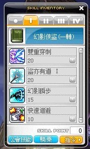 先給每個技能1點後,就馬上把盜亦有道III點滿,建議竊取落葉斬或箭雨在練功上有很大的幫助