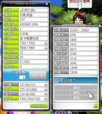 等於可以增加90%HP/MP,加上原本的高迴避,和一轉法師的魔心防禦,幻影俠盜可說是打不死的小強阿。