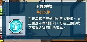 就可以獲得正義硬幣,由於這次官方並沒像之前那樣送予4轉技能書,所以硬幣就顯的格外重要