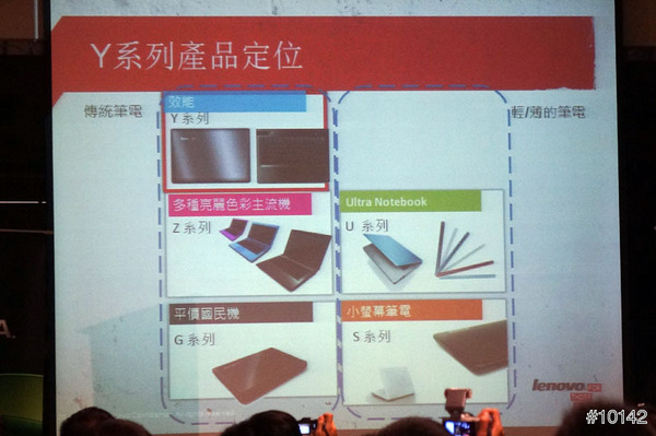 ▲今天介紹了這麼多系列機種,從定位來看可分為這五大系列:Y系列使用較高階的顯卡並包含內顯,是適合娛樂、遊戲、效能的機種;Z系列的外殼顏色較多,採用的音效和顯卡是比較中階等級;U系列是Ultrabook,之前在電腦展也打出很漂亮的價格,是台灣最低價;G系列是平價國民機,價格真的很有競爭力。S系列是11.6吋小筆電機種。每個機種都有不同族群。
