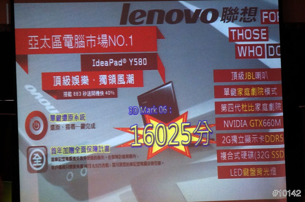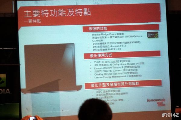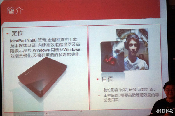 ▲緊接著就介紹今天的廠商聯想Lenovo產品;今天最主要的產品就是這台IdeaPad系列15.6吋筆電Y580