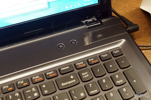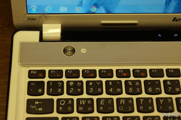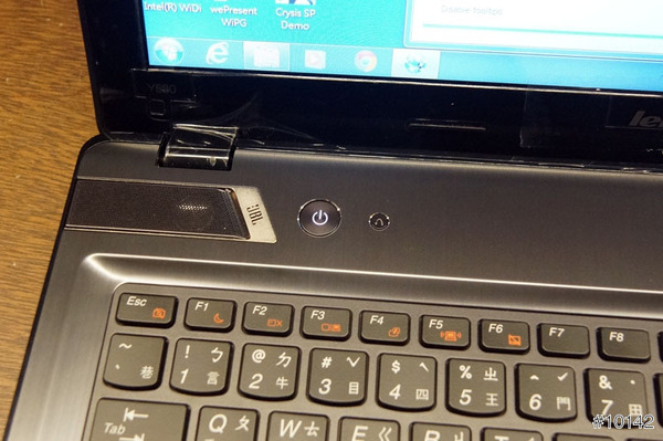 ▲電源開關位於上方左側,和Y580相同,在電源開關旁有Lenovo筆電的單鍵復原鍵。