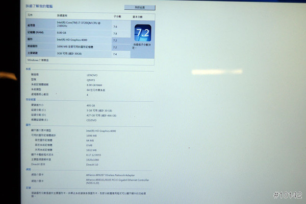 另外Z580也是有配備Core I7-3612QM的版本,價格也非常划算