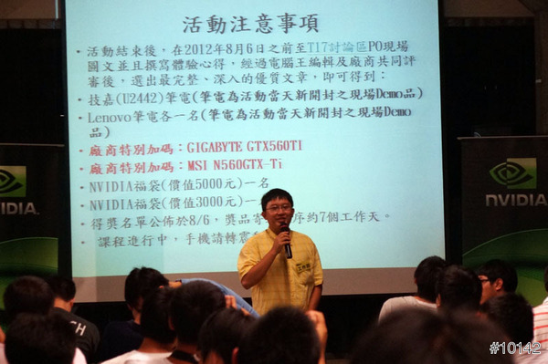 ▲首先的講師一樣由電腦王編輯:國寶大師文恩擔綱,文恩大師說明這一場將會由另一個角度來介紹Lenovo搭載了NVIDIA® GeForce 600M系列筆電的功能說明
