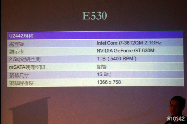 ▲E530的配備了省電版的Core I7-3612QM,這款價位也比Y580便宜一些